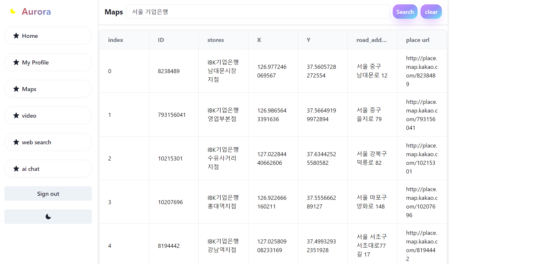 | Aurora-(9)지도기능, video 기능, api를 활용한 웹 크롤링 기능, 실시간 검색어 순위 제공 (0) | 2023.11.24 |