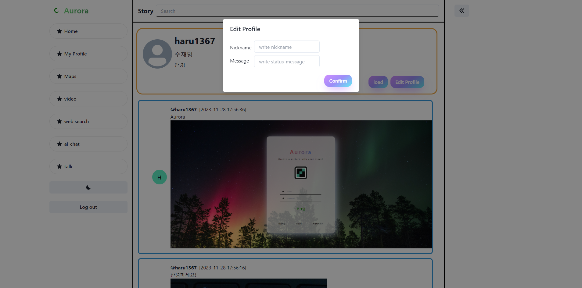Aurora-(13)최종 프로젝트 2 -Myprofile,maps,video