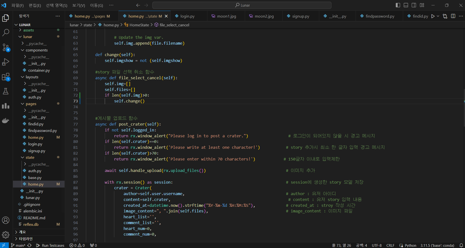 Lunar-(7)홈화면 기능 추가(사진 업로드, 공감기능, 댓글기능)