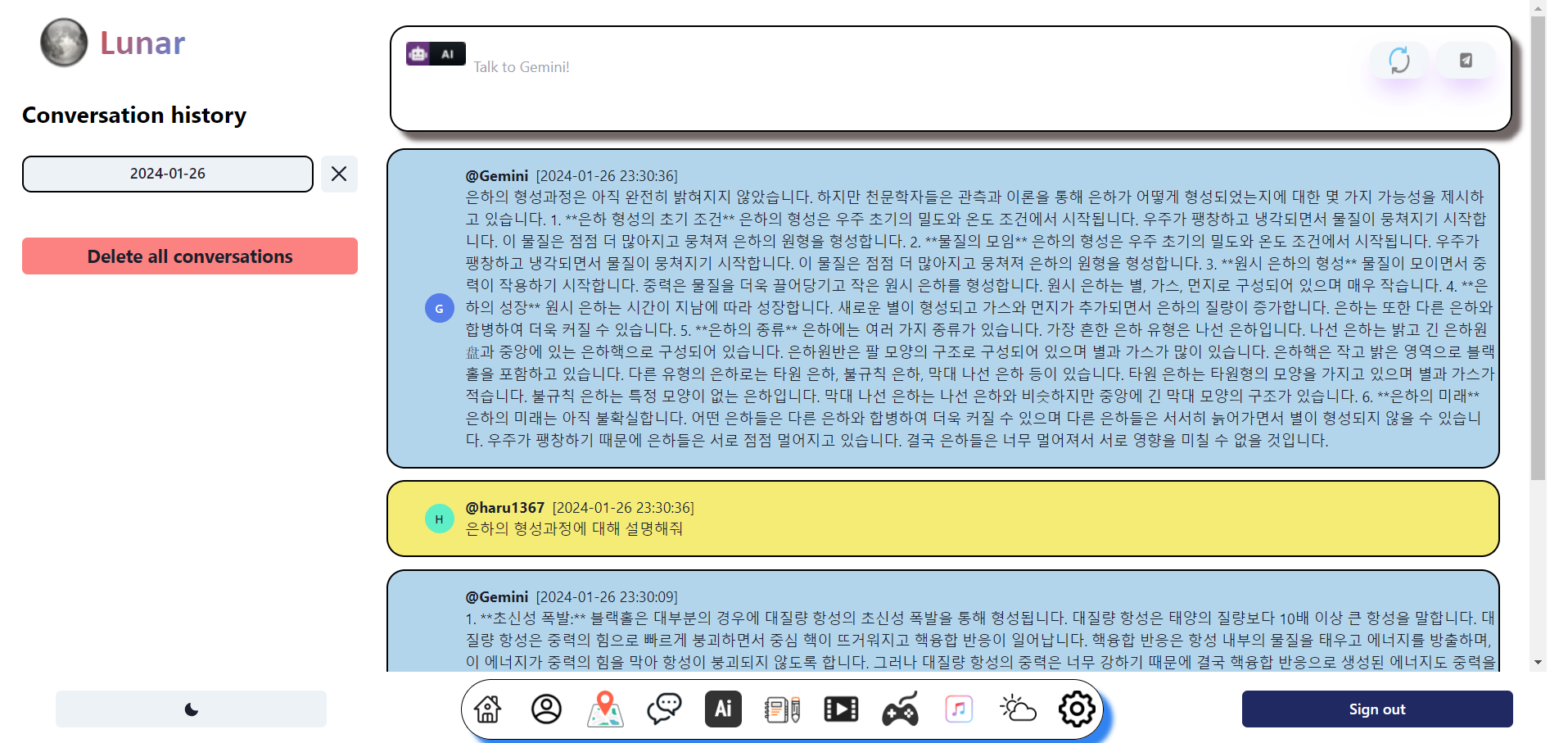 Lunar-(17)ai-chat 날짜별 대화기록 조회 및 삭제 기능